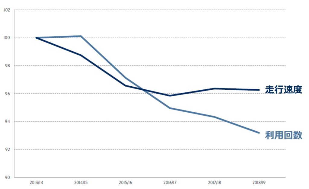 ロンドンでは1968年に最初のバスレーンが設置されて以降、順次その延長を拡大し世界最大規模のバスレーンネットワークを有するに至っています。一方で近年は配送やライドシェアの増加による渋滞の悪化が指摘されており、継続的なバスレーン整備の取り組みにもかかわらず、バスの平均走行速度が低下していました。そしてこれは、バス利用者の減少に影響していると考えられていました。